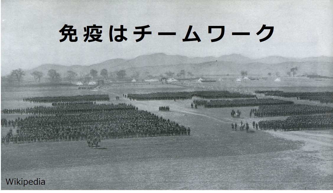 免疫という働きは、いろいろな種類の細胞や化学物質の チームプレイ です。
