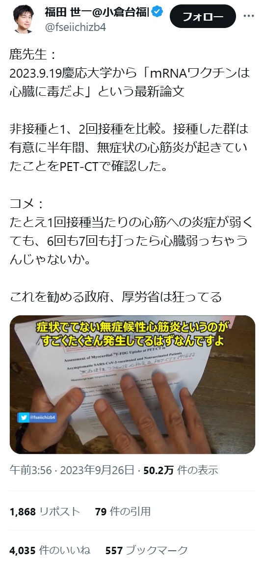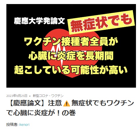 2023.9.19慶応大学から「mRNAワクチンは心臓に毒だよ」という最新論文