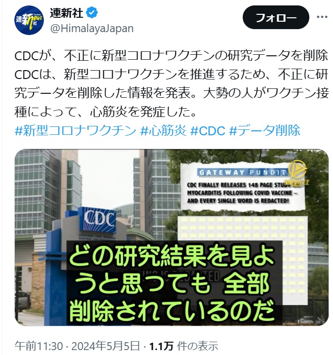 CDCは、新型コロナワクチンを推進するため、不正に研究データを削除した情報を発表。大勢の人がワクチン接種によって、心筋炎を発症した。#新型コロナワクチン #心筋炎 #CDC #データ削除 pic.twitter.com/yS5TuLGNHH