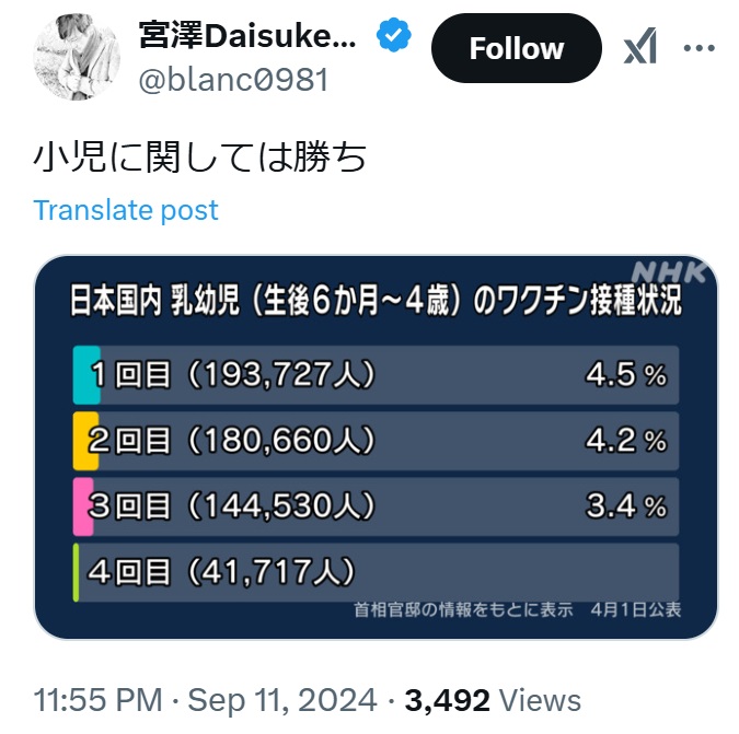 — 宮澤Daisuke医師🏥宝塚カンパはプロフ欄から (@blanc0981) September 11, 2024