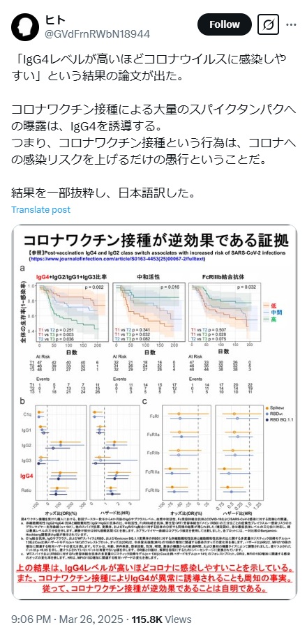 大方のワクチン推進派の願い虚しく、やはり「IgG4のレベル上昇は感染リスクを高める」ということが示された。