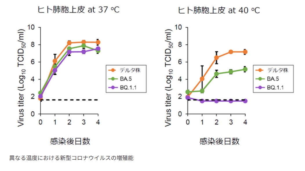 新型コロナウイルス・オミクロン株のBA.5系統およびBQ.1.1系統が、高温で増殖しづらいことを解明(京都大学医生物学研究所など、2023.04.24)