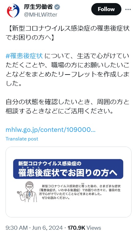 — 厚生労働省 (@MHLWitter) June 6, 2024