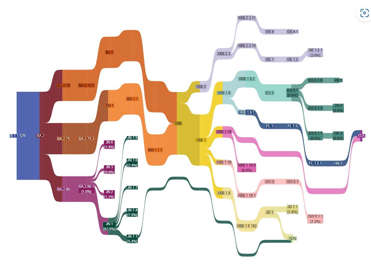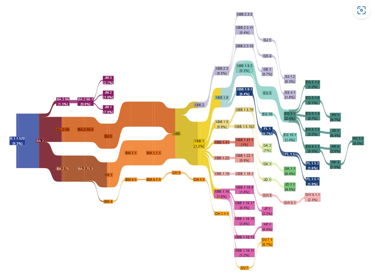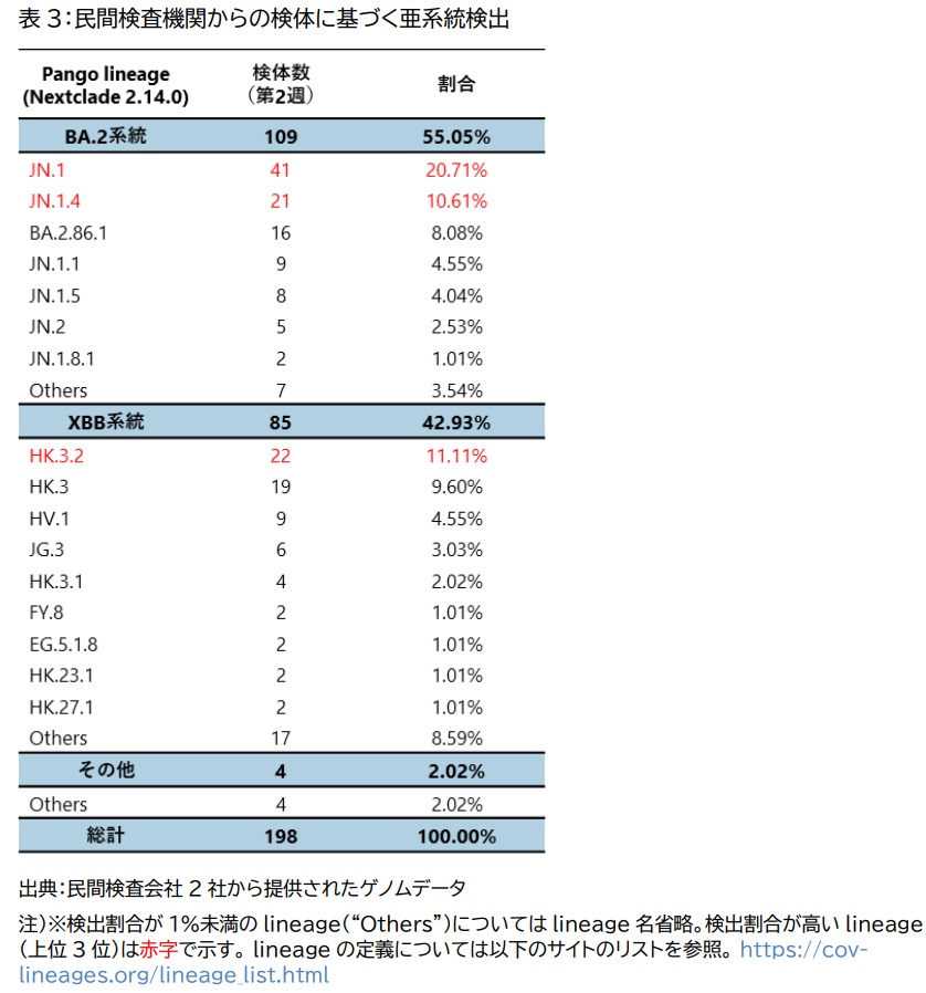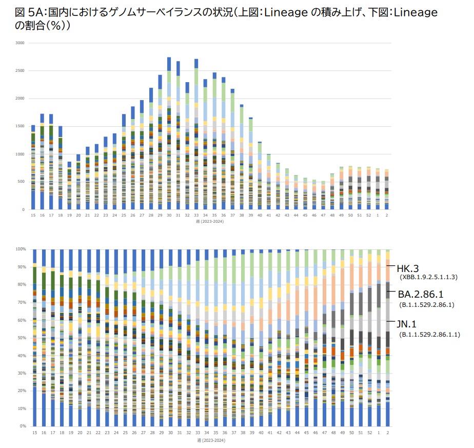 多いのは「HK.3(XBB.1.9.2.5.1.1.3)」、「BA2.86.1(B1.1.529.2.86.1)」、「JN.1(B.1.1.529.2.86.1.1)」など