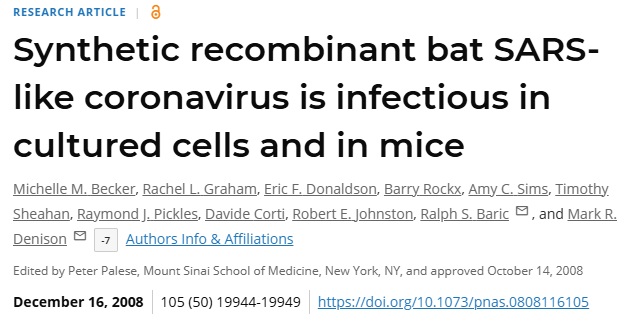 新しい変異型SARSウイルスは、ノースカロライナ大学の ラルフ・バリック博士率いる研究グループ によって作られた。