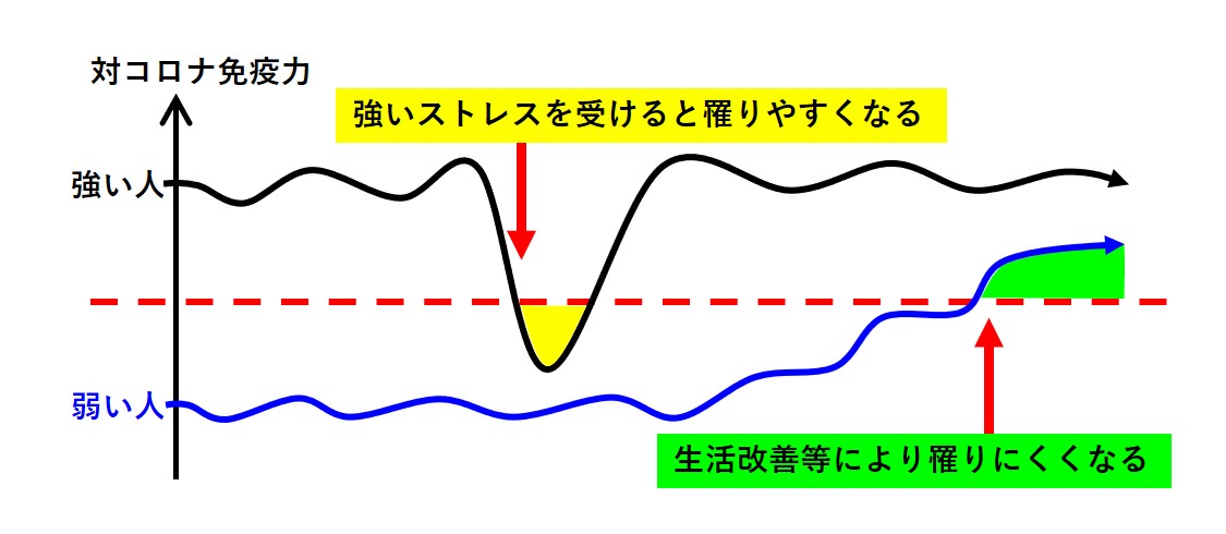 発熱外来で勤務するということは、他の医師よりは少し多めにウイルスを身体内に受け容れるということですが、コロナ用の免疫が下がったときには感染する可能性が大きくなります。