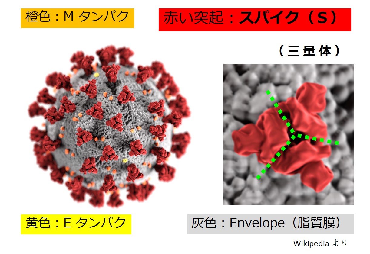 コロナ(SARS-CoV-2)が有する種々のタンパクの中で、最も注目されているのがスパイク(Sタンパク)です。