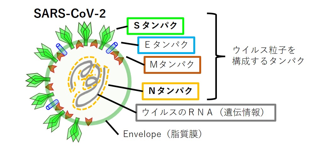Sタンパク(スパイク) と Nタンパク(ヌクレオカプシド) を覚えればよいでしょう。