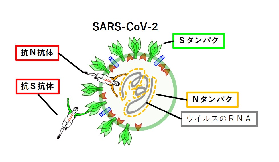 何らかの原因でウイルス粒子が破壊され、内部のNタンパク(ヌクレオカプシド)が露出した時でないと「抗N抗体」は抗原(Nタンパク)に結合できません。