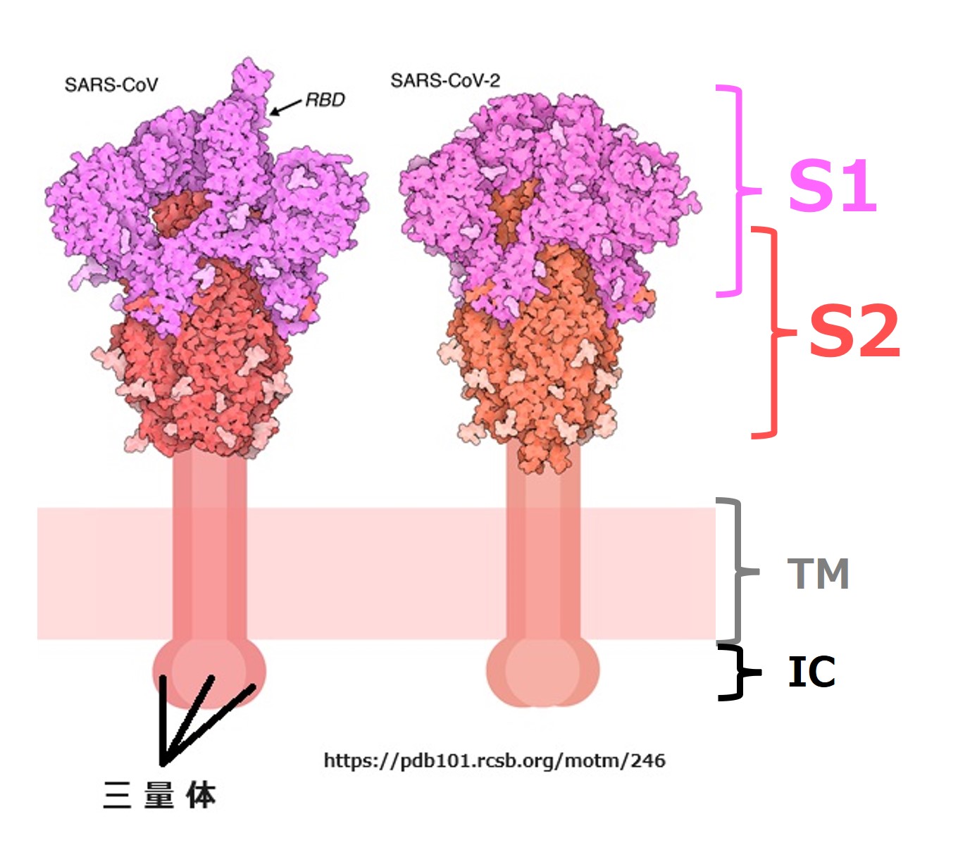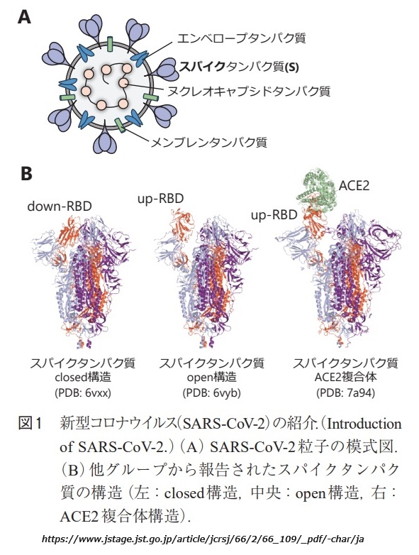 参考:新型コロナウイルス(SARS-CoV-2)スパイクタンパク質の構造解析 日本結晶学会誌 66, 109-114(2024)