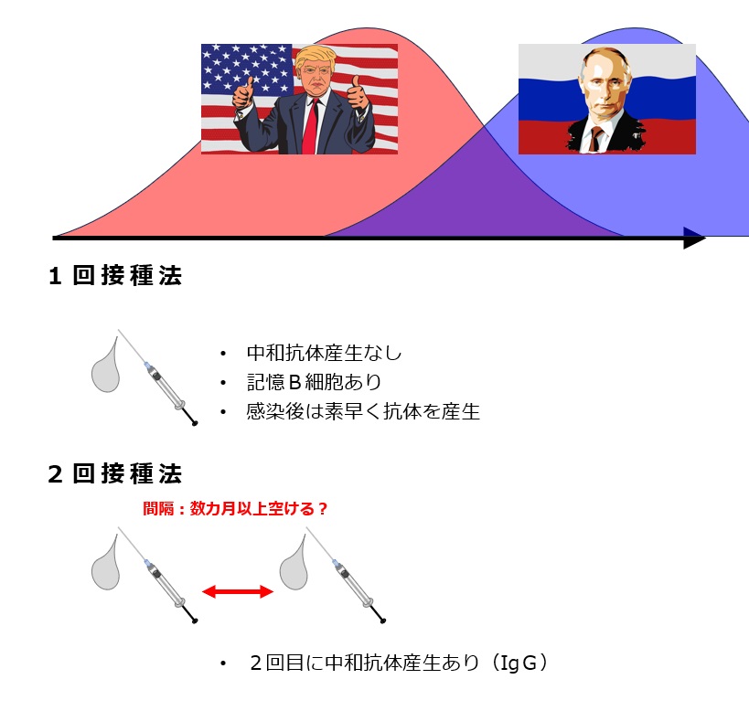日本で「トランプ株用のmRNAワクチン」を1回接種しても免疫刷り込み(≒ 抗原原罪)のため「トランプ株」用の中和抗体は産生されません。しかし、メモリー細胞は用意されます。