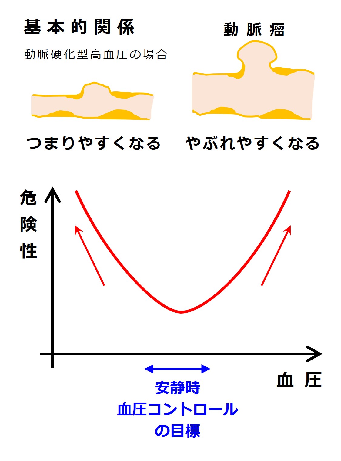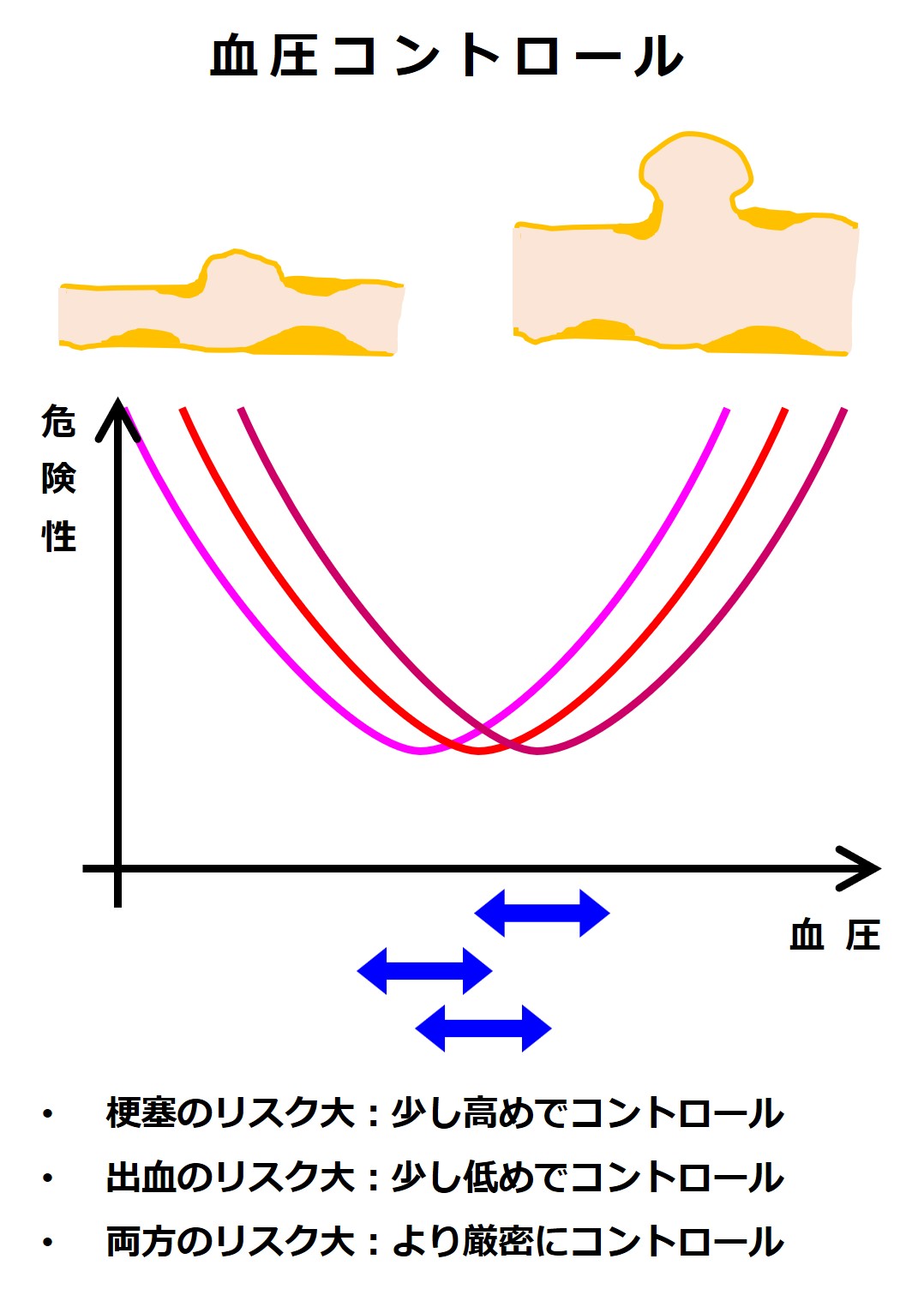 血管の破れるリスクが大きいのか、血管の塞がるリスクが大きいのか、その両方のリスクをもっているのかは、目標を設定する時の目安のひとつです。