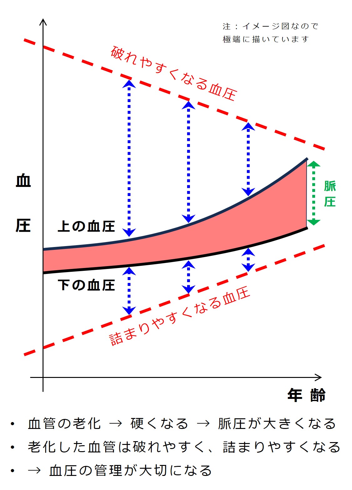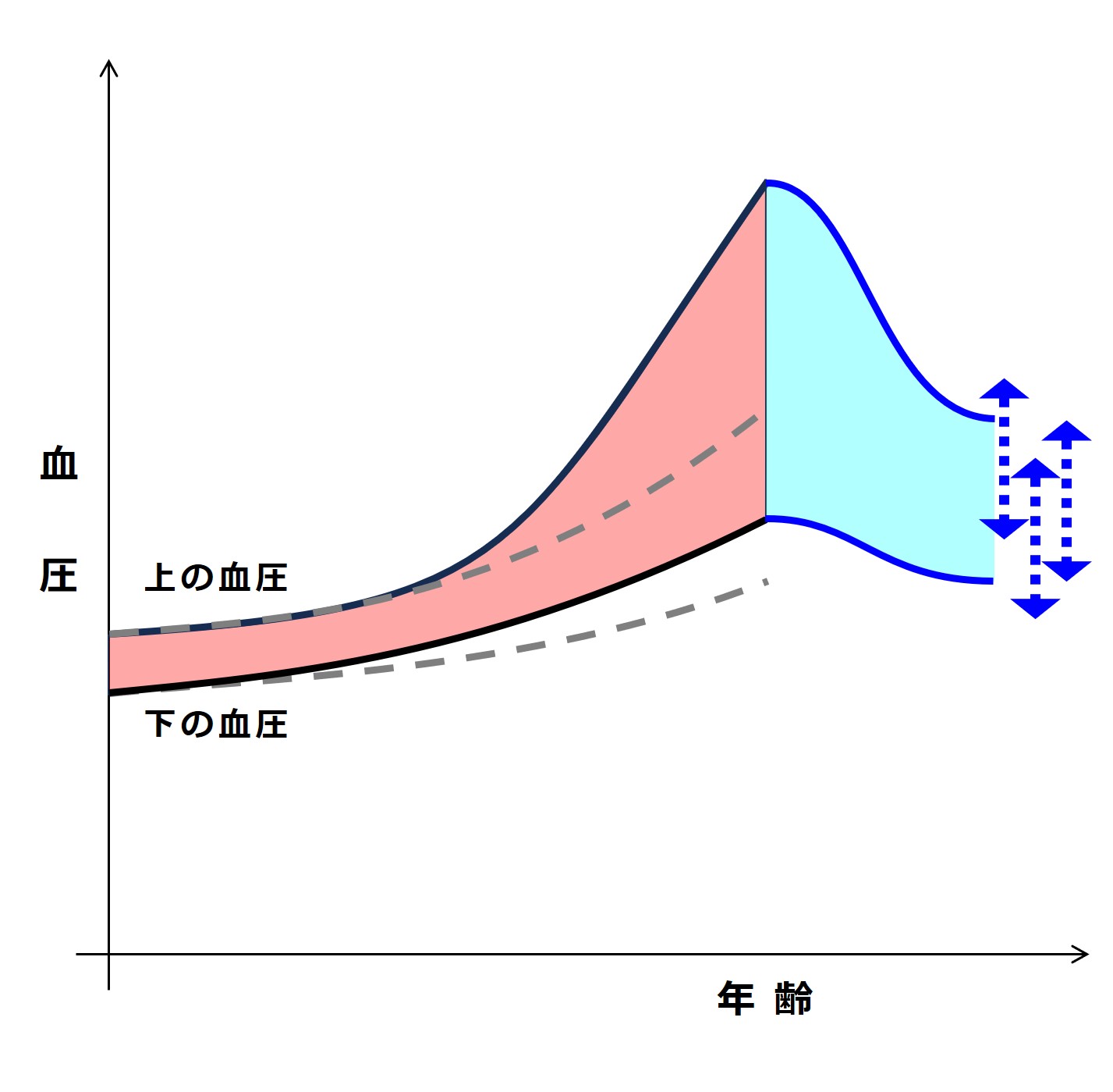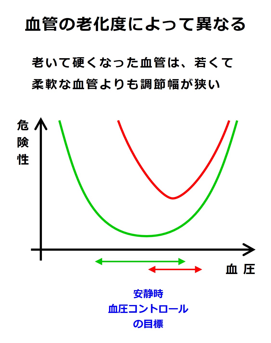 高齢者では調節の幅が狭く、またうまく調節できていても血管トラブルの起こる可能性は若者よりも大きいです。