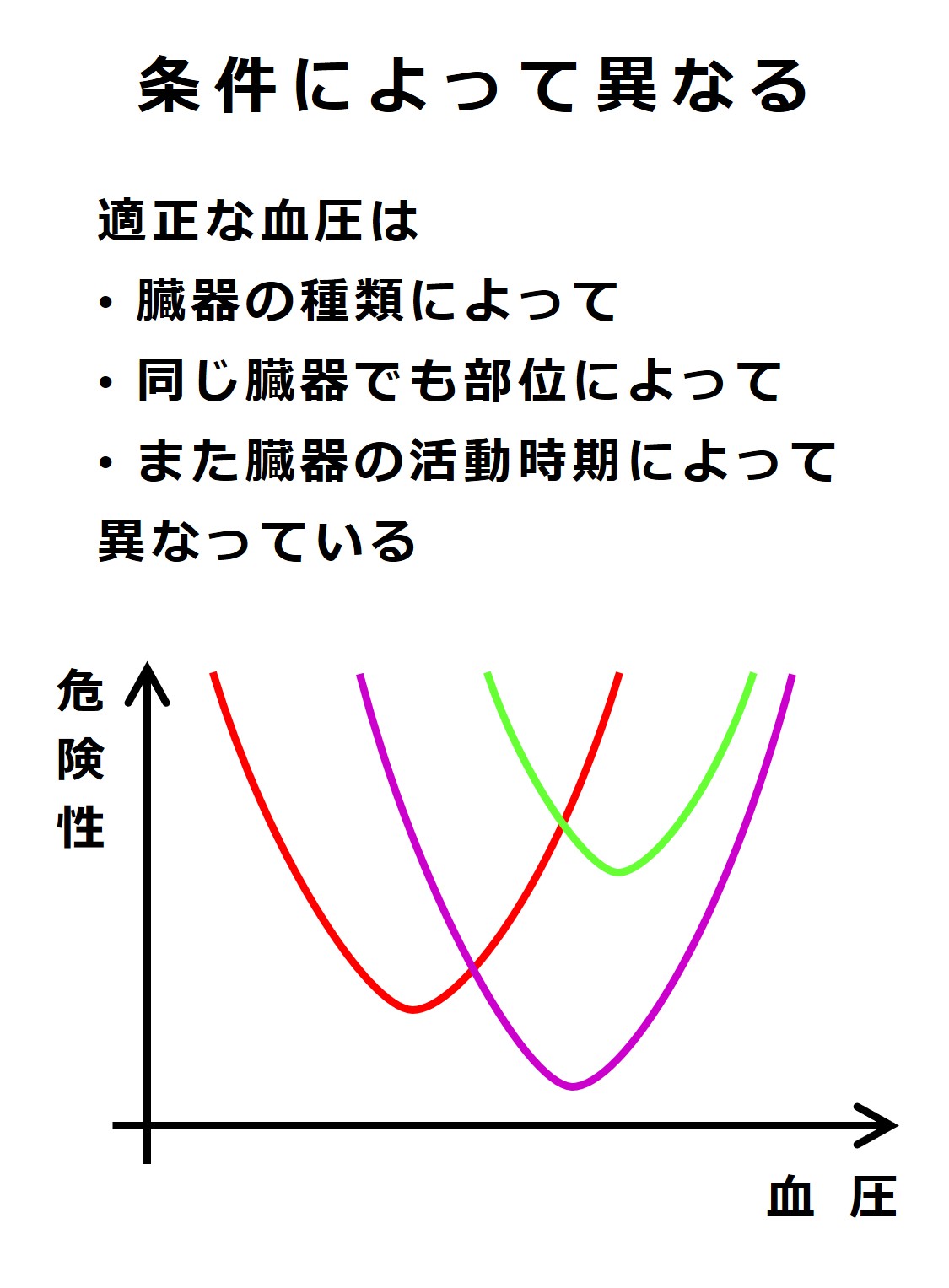 肝臓にとって最適の血圧範囲と腎臓にとって最適の血圧範囲は異なります。