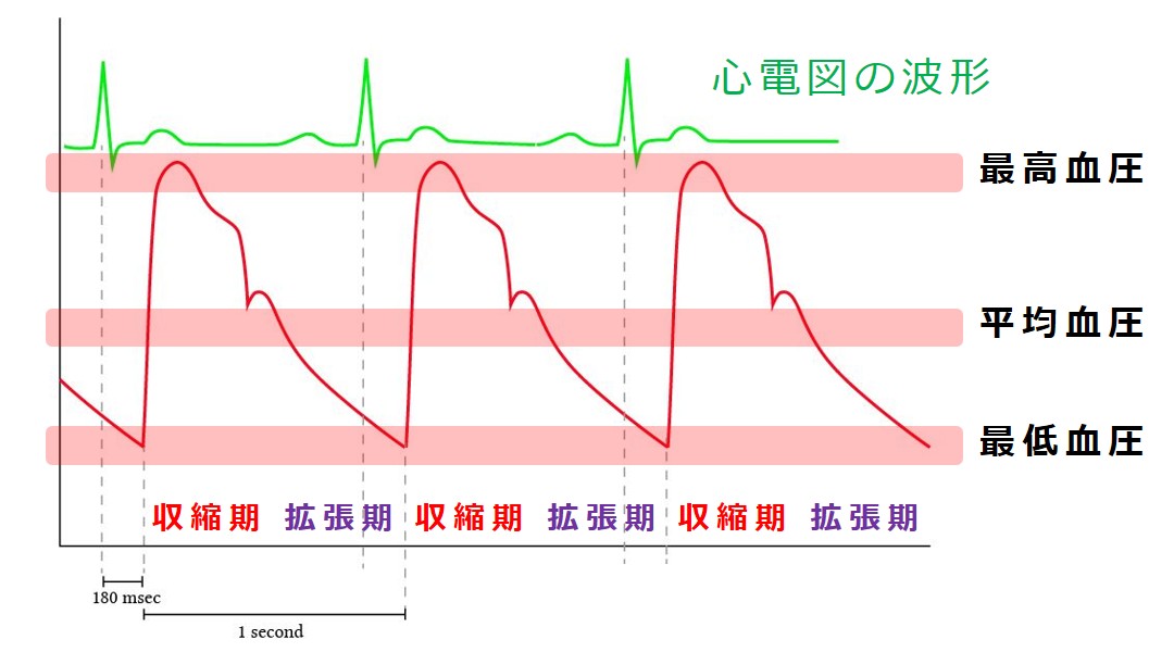 「脈圧(血圧の上と下の開き具合)」は血管壁の弾力性と関係します。