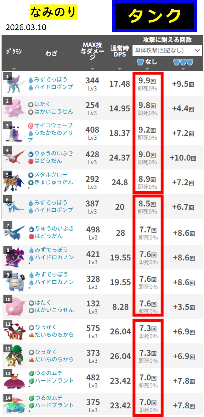 「みんポケ」さんの「マックスバトルタイプ別最強タンク一覧:▶ ▶ ▶」(2025.06.10)いくつか条件によっては最強が入れ替わりますので、記事で確認しましょう。