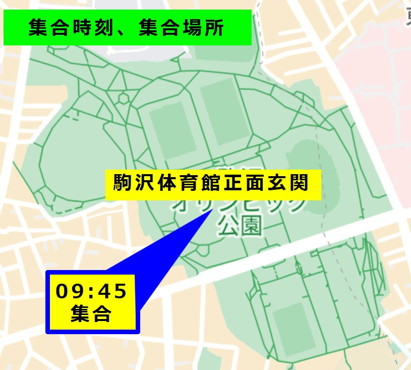 09:45 体育館玄関(の内側や外側)にプレイヤーがたくさんいないときは、売店北側に集まっていないか調べてください。