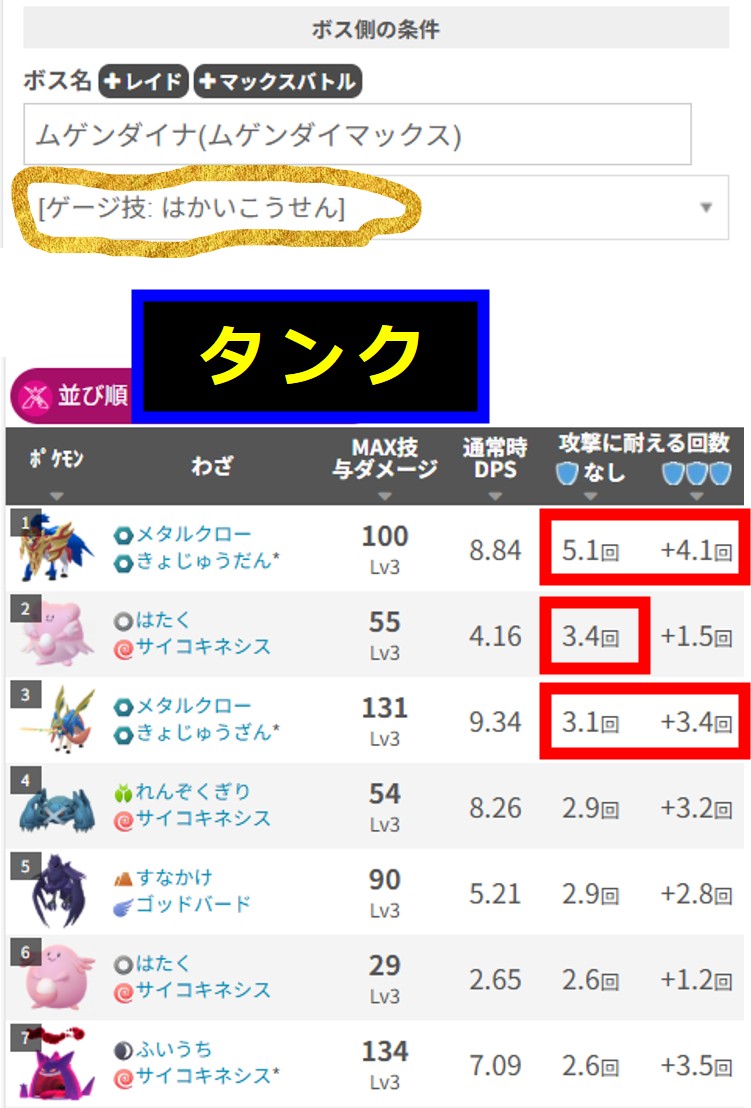 ムゲンダイナの使う技が「火炎放射」の場合は、ゲームをリセットするか、タンク役をハピナスに換えるとか、ムゲンダイナの使う技が「ダイマックス砲」の場合は、タンクポケモンをザシアンに換えるといった細かな対応が必要になるかもしれません。