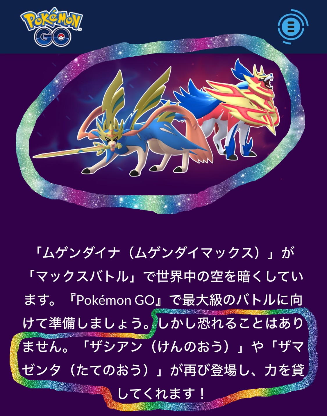 公式の案内では、次のようにザシアンとザマゼンタが活躍することになっています。