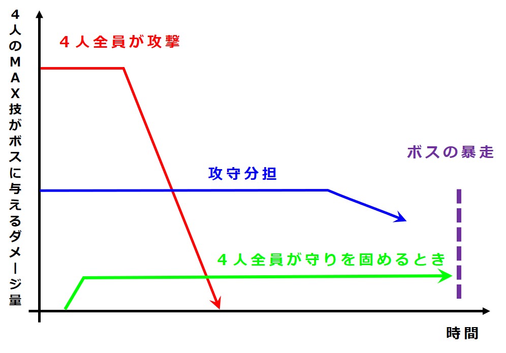 バトルの推移にともなう役割の変化