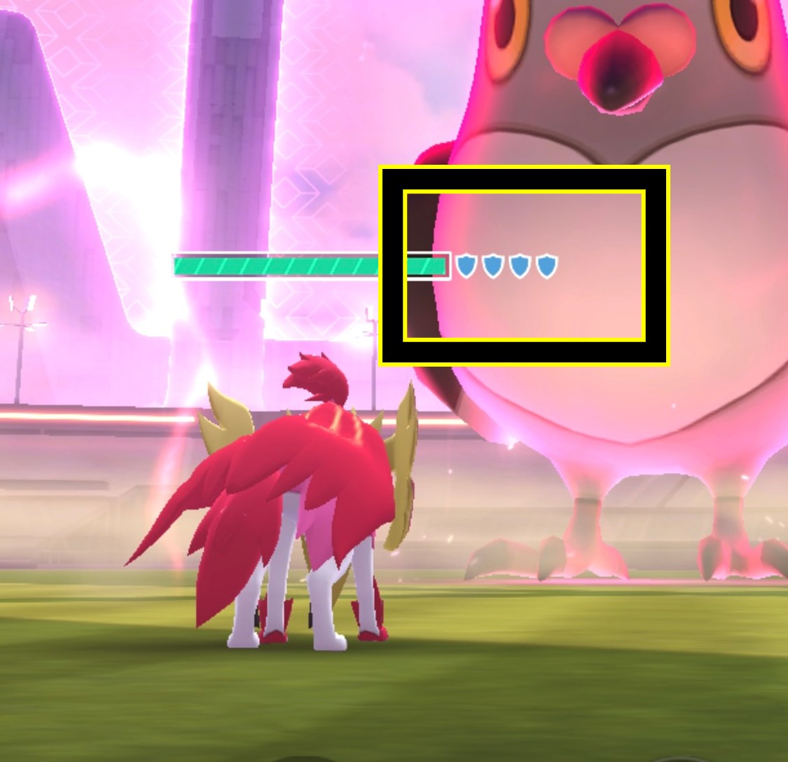 最初の(キョ)ダイマックス化のとき、トレーナー No.1 のみがポケモン(No.1 盾1)にシールドを3枚張ります。