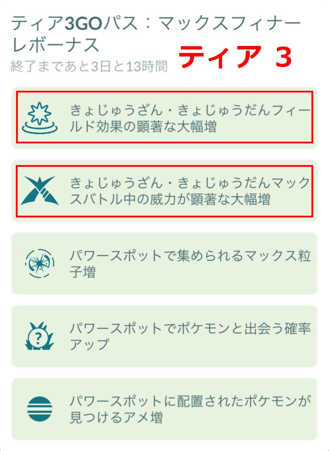 ランク60でムゲンダイナを入手し、ランク 89 になると「ティア3」のボーナスが適用されます。