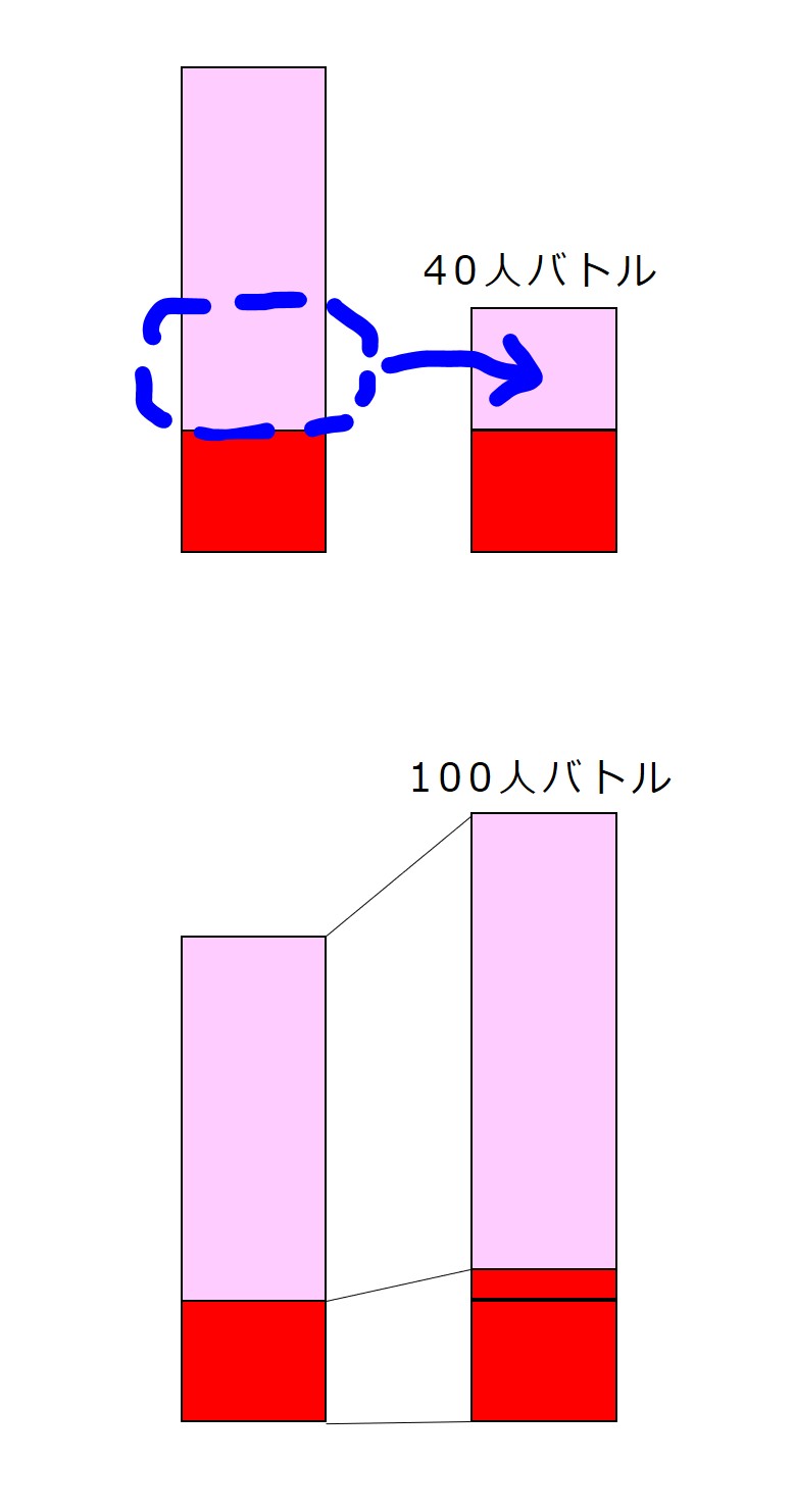 「100人バトル」になると、トレーナー1人あたりの平均攻撃力はかなり低下します。