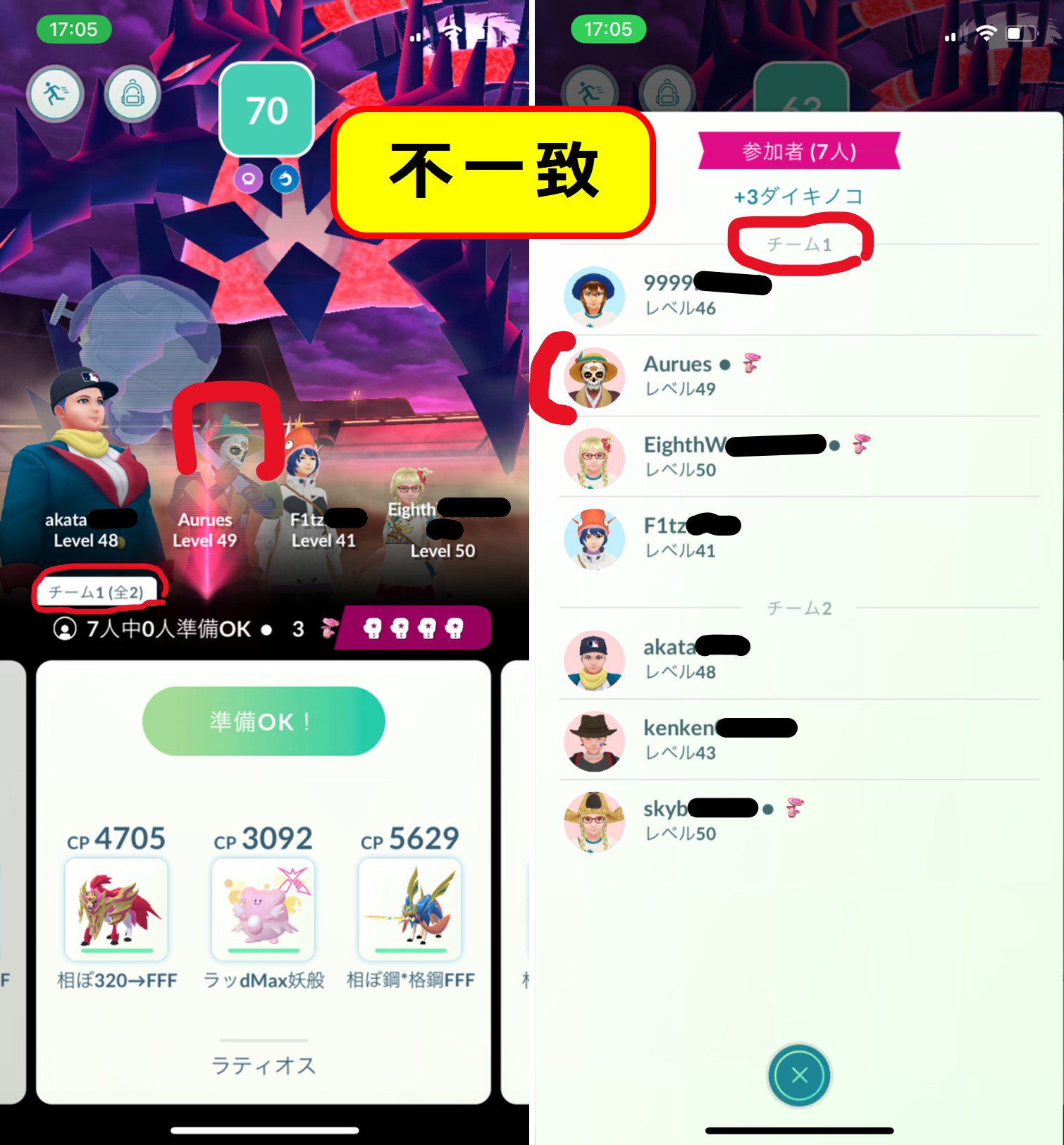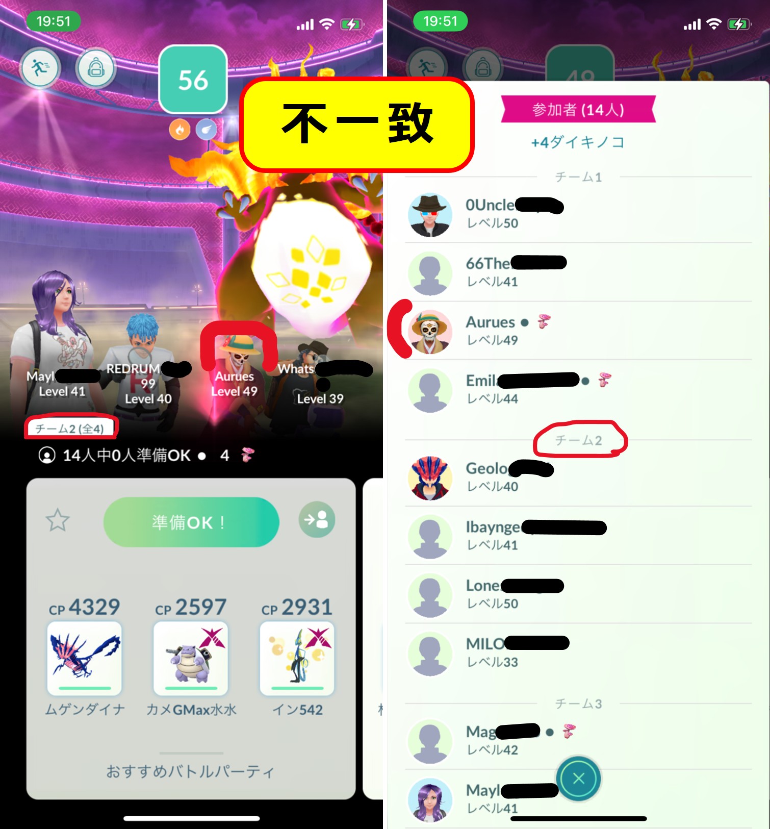 4人グループを作って同時刻に参戦しても、GOのアプリ側で勝手にメンバーを入れ替えているようです 🙃