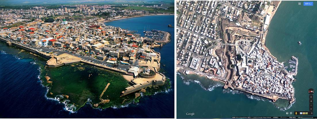 Wikipedia の Acre (Israël) 2012 より。右は Google Map 2014.12 より