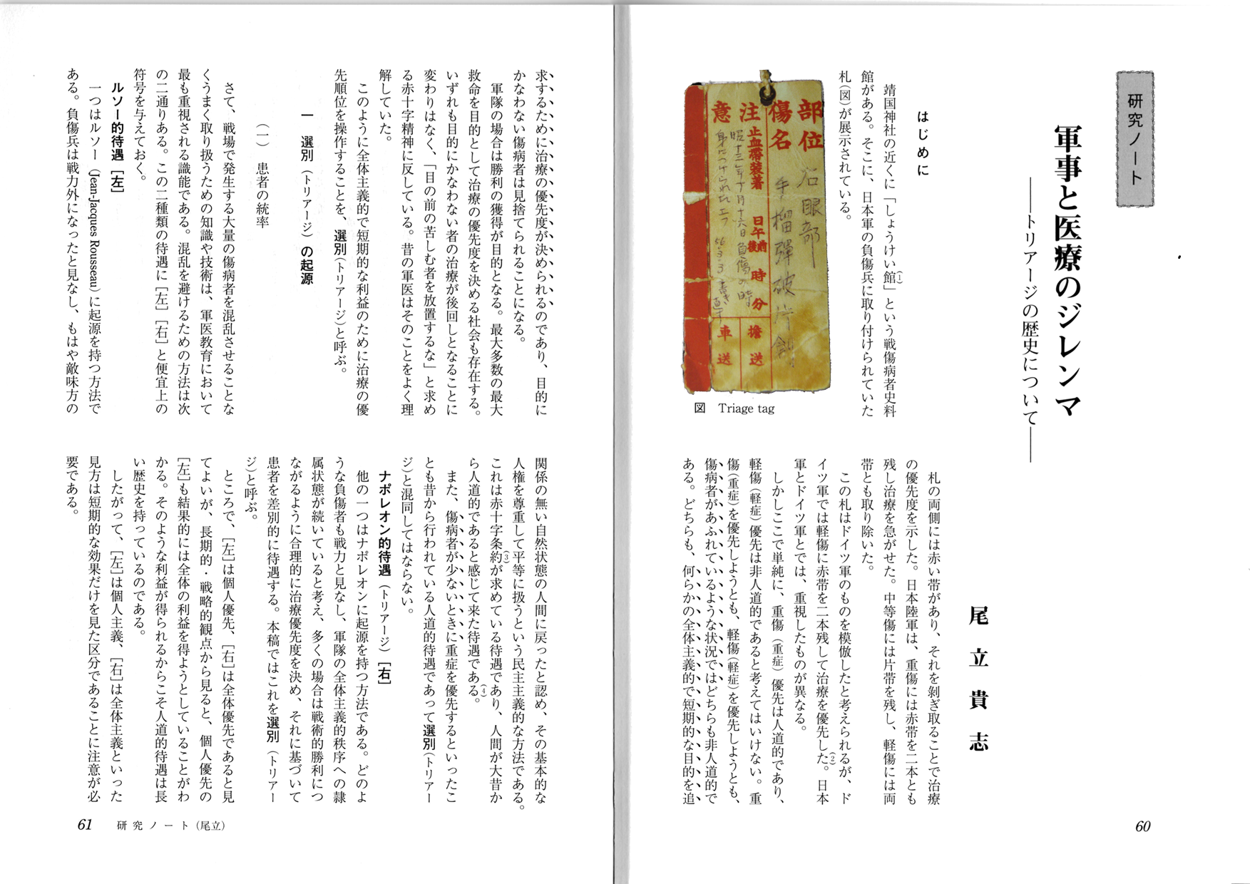 ◆ 説明資料4:▶ ▶ ▶ 「軍事史学 第49巻 第3号 特集 軍事と医療Ⅰ」(研究ノート)軍事と医療のジレンマ ─トリアージの歴史について─(平成25年2013年12月1日)