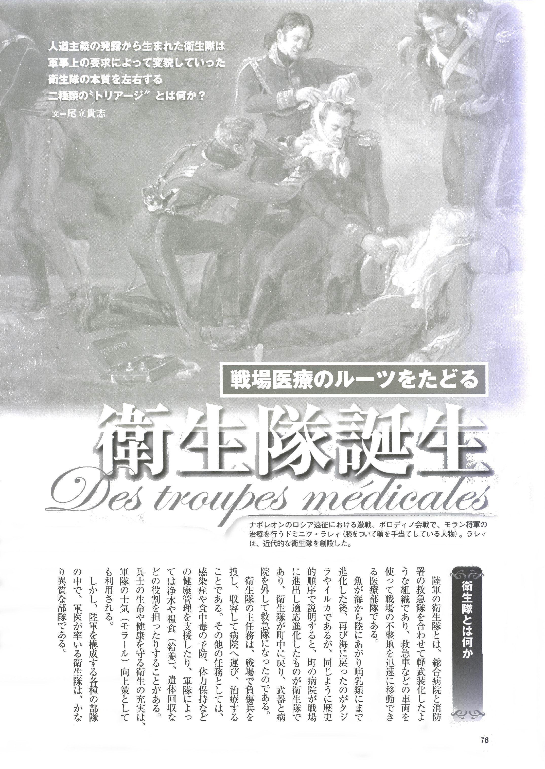 ◆ 説明資料2:「戦場医療のルーツをたどる 衛生隊誕生」、歴史群像No.103, pp78-86(2010年10月号、学研パブリッシング)