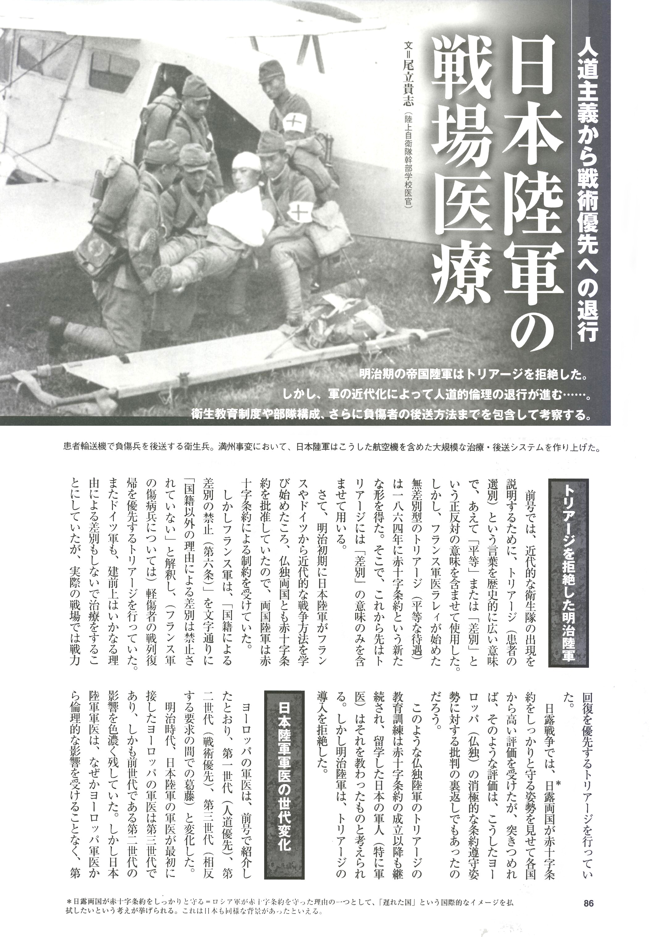 ◆ 説明資料3:「人道主義から戦術優先への退行 日本陸軍の戦場医療」、歴史群像No.104, pp86-94(2010年12月号、学研パブリッシング)